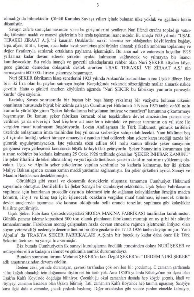 Uşak Vali Mavini Atilla DURMUş'un Nuri ŞEKER Hakkında Yazdığı 17 Aralık 2001 Tarihinde Yazdığı Yazı 3.Bölüm