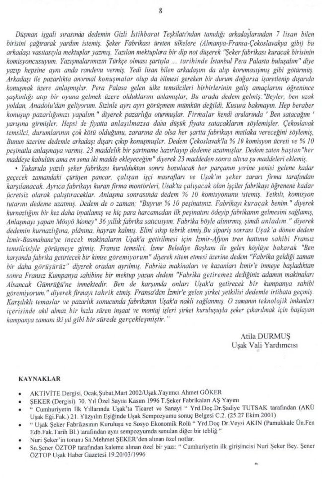 Uşak Vali Mavini Atilla DURMUş'un Nuri ŞEKER Hakkında Yazdığı 17 Aralık 2001 Tarihinde Yazdığı Yazı 7.Bölüm